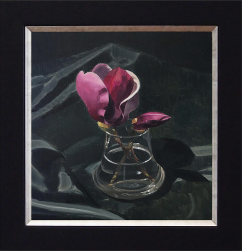 Still life painted under artificial light.